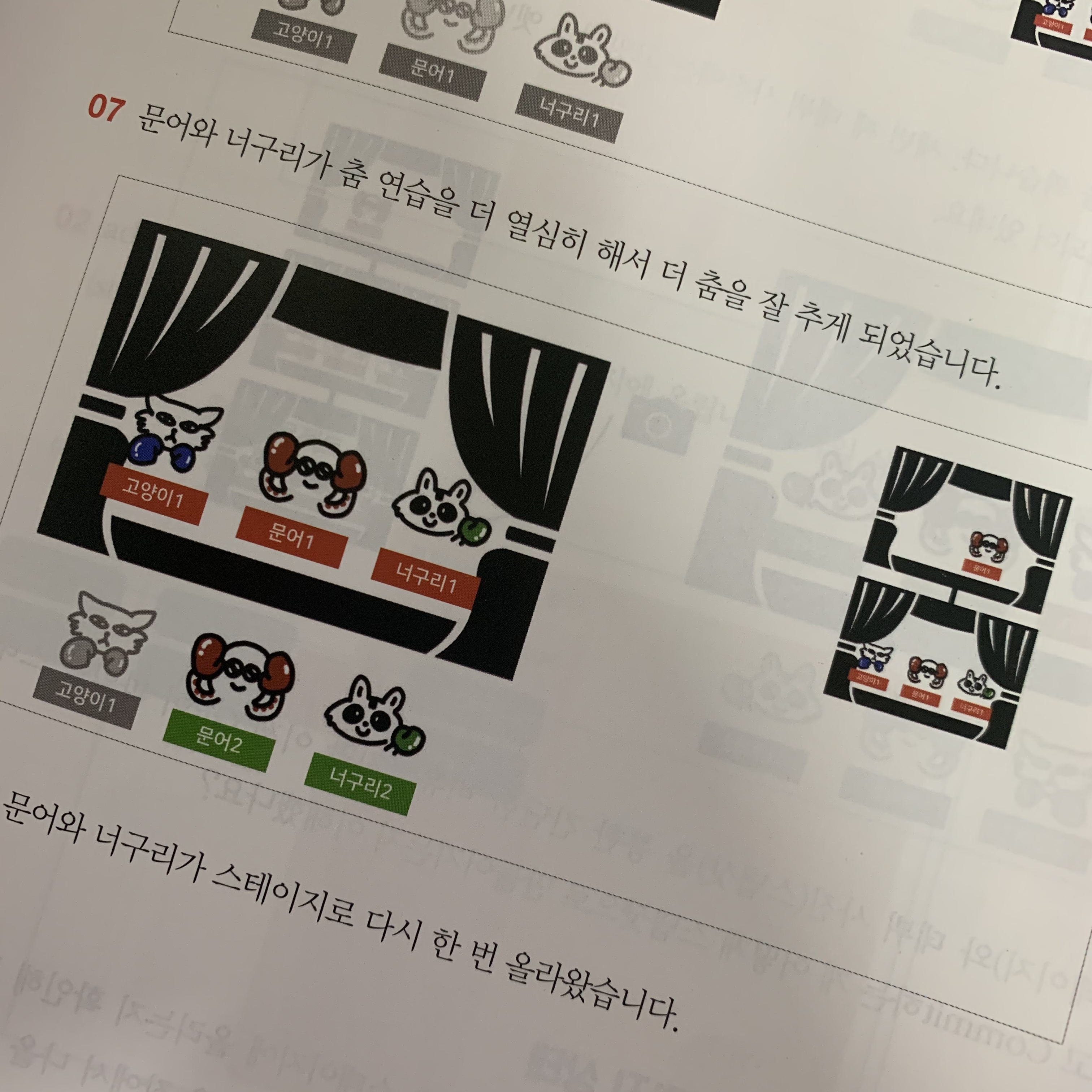 ๊ฐ ์ฅ์ ์ฒซ ํ์ด์ง์๋ ๋ชฉํ์ ํจ๊ป ๋ฌธ์ด, ๊ณ ์์ด, ๋๊ตฌ๋ฆฌ์ ๋ํ ํ์์ผ๋ก ํด๋น ์ฅ์์ ์ด๋ค ์ผ์ ํ ๊ฒ์ธ์ง ๊ฐ๋ตํ ์์ ๋์ด ์์ด ๋ฐฐ์ธ ๋ด์ฉ์ ์ฝ๊ฒ ํ์